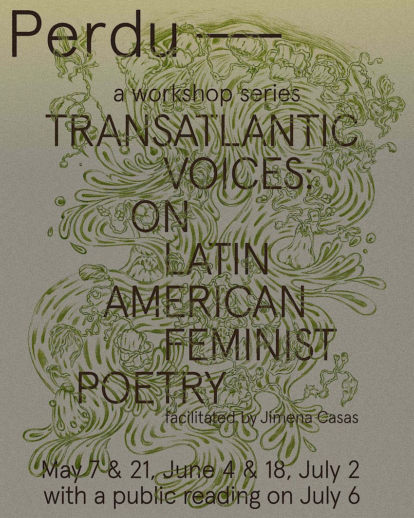 07.05, 21.05. & 04.06, 18.06 & 02.07. Transatlantic Voices: On feminist Latin American Poetry, facilitated by Jimena Casas, visuals by Azul de Monte