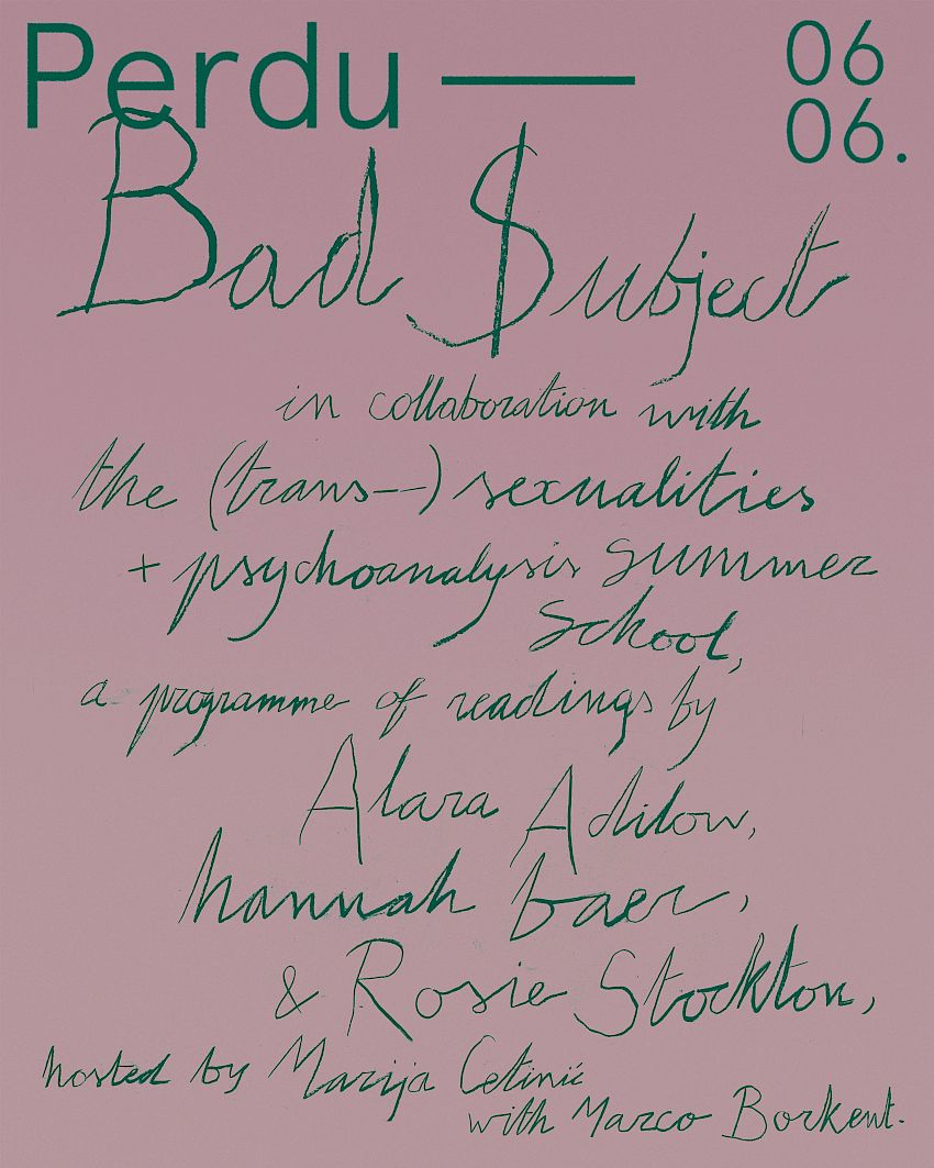 06.06. Bad $ubject — Alara Adilow, hannah baer, Rosie Stockton, With an introduction by Marco Borkent. Hosted by Marija Cetinić.